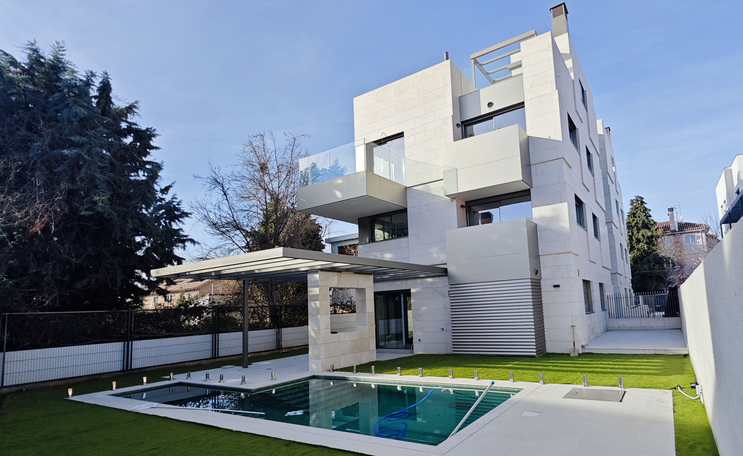El residencial cuenta con zonas comunes ajardinadas, piscina, trasteros y dos plazas de garaje por vivienda, además de la opción de plazas para moto. Su emplazamiento permite disfrutar de un entorno natural sin renunciar a la cercanía de servicios, transporte y conexiones con el centro de Madrid.